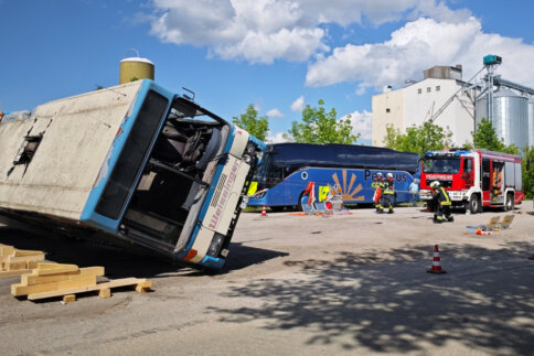 Die Ortswehr in Marklkofen ist in der glücklichen Lage, einen „Bus“ zu haben, mit dem die Handgriffe bei Unfallszenarien geprobt werden können. Längst ist das Fahrzeug „trockengestellt“, so dass keinerlei Gefahr für die Umwelt oder die Einsatzkräfte besteht. Seit rund drei Jahren beübt das Marklkofener Team das Fahrzeug regelmäßig, nun wollte man es gemeindeübergreifend ausweiten.