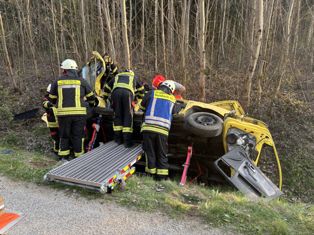 Nach dem Eintreffen übernahm der stellvertretende Kommandant Stefan Dittrich aus Marklkofen die Einsatzleitung. Zunächst wurde die Einsatzstelle abgesichert und die Lage erkundet. Der Fokus lag klar auf der Rettung der Verletzten: Ein Kind konnte zügig aus einem Fahrzeug befreit werden, eine weitere Person musste aufwendig und schonend gerettet werden, ein vermisstes Kind wurde im angrenzenden Wald gesucht und gefunden, Parallel dazu bereiteten die Einsatzkräfte einen möglichen Hubschrauberlandeplatz vor.
