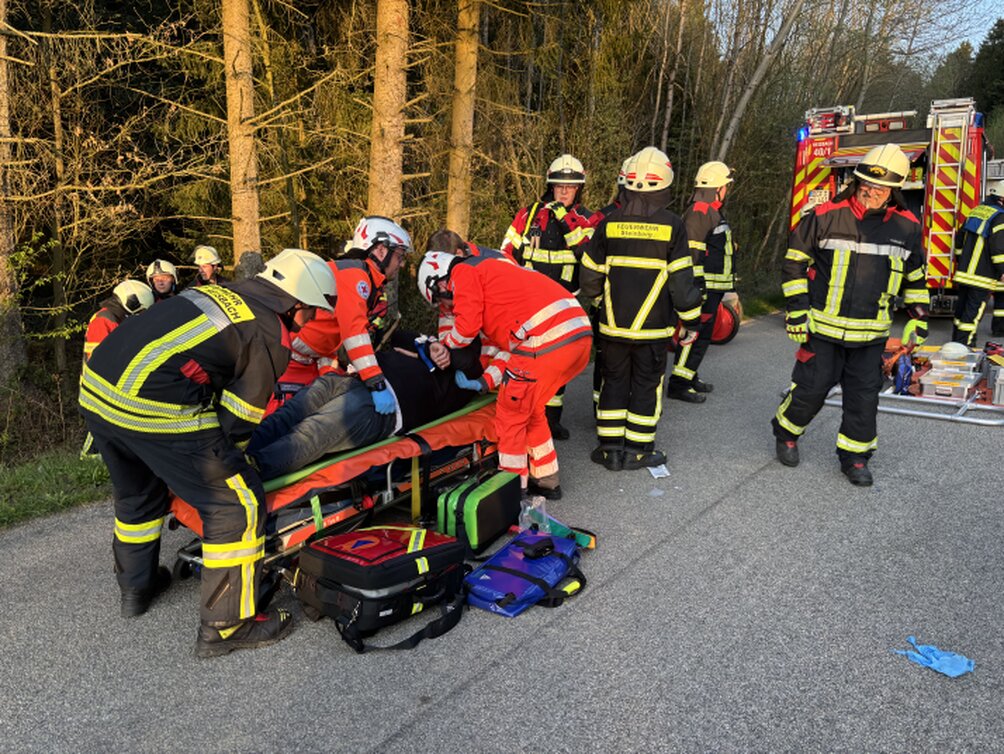 Organisiert wurde die Übung von Kreisbrandmeister Thomas Prinz gemeinsam mit Rudi Madinger und Andreas Brandstetter. Als Übungsort diente eine schwer einsehbare Kurve zwischen Weiher und Kenading. Angenommen wurde ein Unfall mit drei beteiligten Fahrzeugen: Ein Pkw war unter einen Traktoranhänger geraten, ein weiteres Fahrzeug kam im Straßengraben zum Liegen. Mehrere eingeklemmte Personen sowie vermisste Beteiligte sorgten für eine komplexe Lage. Bereits beim Aufbau zeigte sich ein wichtiger Aspekt: Absperrungen wurden von Verkehrsteilnehmern teilweise ignoriert. Ein Verhalten, das im Ernstfall wertvolle Zeit kosten und Einsatzkräfte gefährden kann.